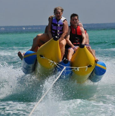 Banana ride makes you feel the vibe of a riding a stream ski. Most people who pick Banana Vessel ride are adrenaline searchers who have an excursion with family or gathering of friends, as it can oblige gathering of individuals without a moment's delay. Banana pontoon ride is a standout amongst the most usually attempted water exercises on the shorelines in Dubai.On the ride, at least one of the general population on the banana watercraft associate their individual cylinders to a speedboat.